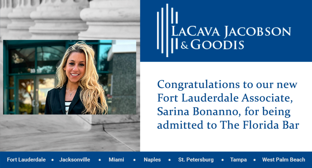 Congratulations to our new Fort Lauderdale Associate, Sarina Bonanno, for being admitted to The Florida Bar