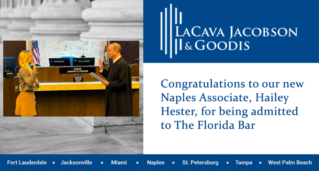 Congratulations to our new Naples Associate, Hailey Hester, for being admitted to The Florida Bar