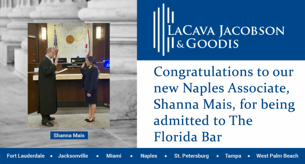 Congratulations to our new Naples Associate, Shanna Mais, for being admitted to The Florida Bar