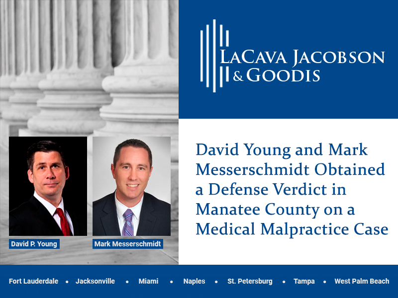 David Young and Mark Messerschmidt Obtained a Defense Verdict in Manatee County on a Medical Malpractice Case