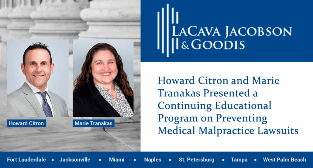 Howard Citron and Marie Tranakas Presented a Continuing Educational Program on Preventing Medical Malpractice Lawsuits