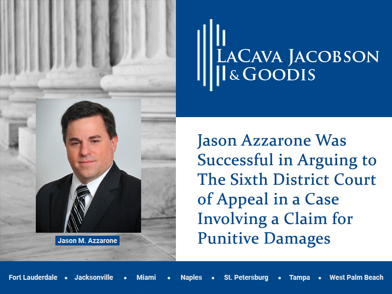 Jason Azzarone Was Successful in Arguing to The Sixth District Court of Appeal in a Case Involving a Claim for Punitive Damages