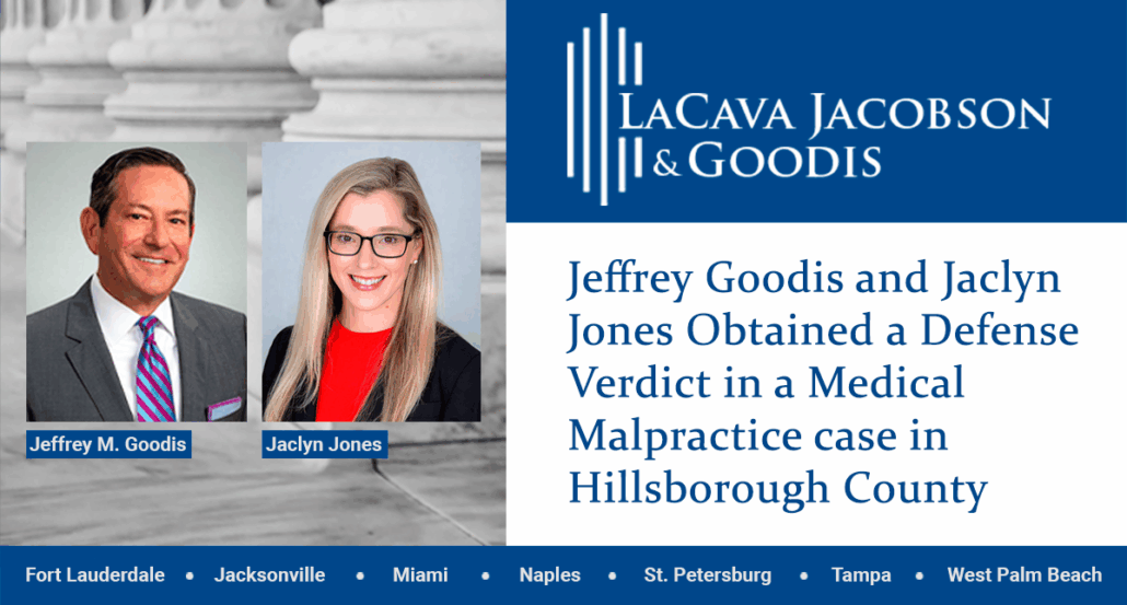 Jeffrey Goodis and Jaclyn Jones Obtained a Defense Verdict in a Medical Malpractice case in Hillsborough County