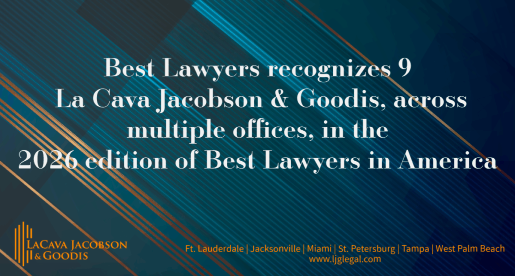 TAMPA, FL – La Cava Jacobson & Goodis is proud to announce that multiple attorneys across Florida have been recognized in the Best Lawyers® 2026 Edition for their outstanding work and dedication to the legal profession. These prestigious honors highlight the firm’s longstanding commitment to excellence in defense litigation.