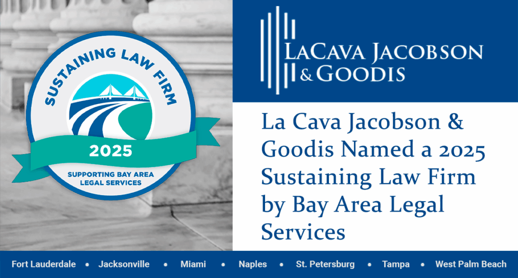 La Cava Jacobson & Goodis is honored to be recognized as a 2025 Sustaining Law Firm by Bay Area Legal Services. This recognition reflects our firm’s continued dedication to supporting access to justice and providing critical resources to underserved communities.