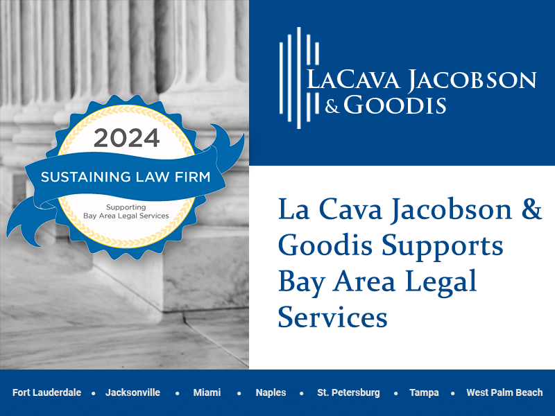 La Cava Jacobson & Goodis is part of the 2024 Sustaining Law Firms for Bay Area Legal Services. La Cava Jacobson & Goodis participate in this program to help ensure access to justice for all, regardless of economic status.