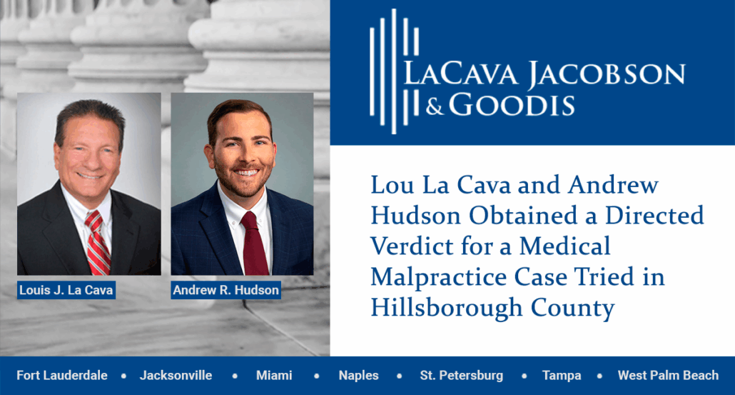 Lou La Cava and Andrew Hudson Obtained a Directed Verdict for a Medical Malpractice Case Tried in Hillsborough County