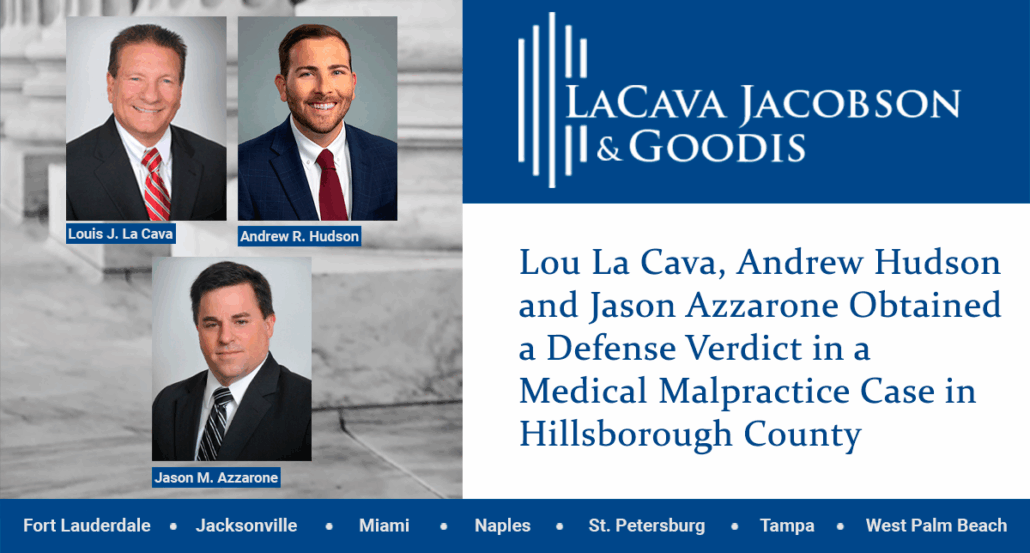 Lou La Cava, Andrew Hudson and Jason Azzarone Obtained a Defense Verdict in a Medical Malpractice Case in Hillsborough County